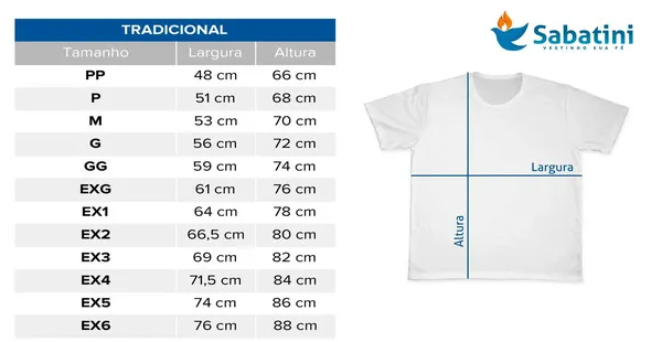 Instruções- Escolha o tamanho da sua camiseta seguindo a tabela de medidas e instruções para medir;